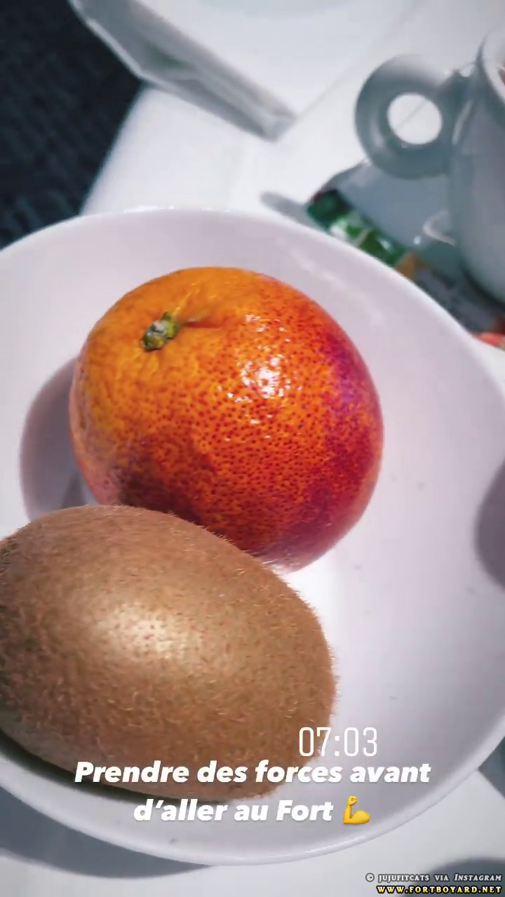 Commentaires : vers 14h30, tandis que Willy Rovelli gagne le Fort en Zodiac, c’est la pause repas sur le Fort pour Tibo InShape à la cantine et en terrasse pour Laura Mété.