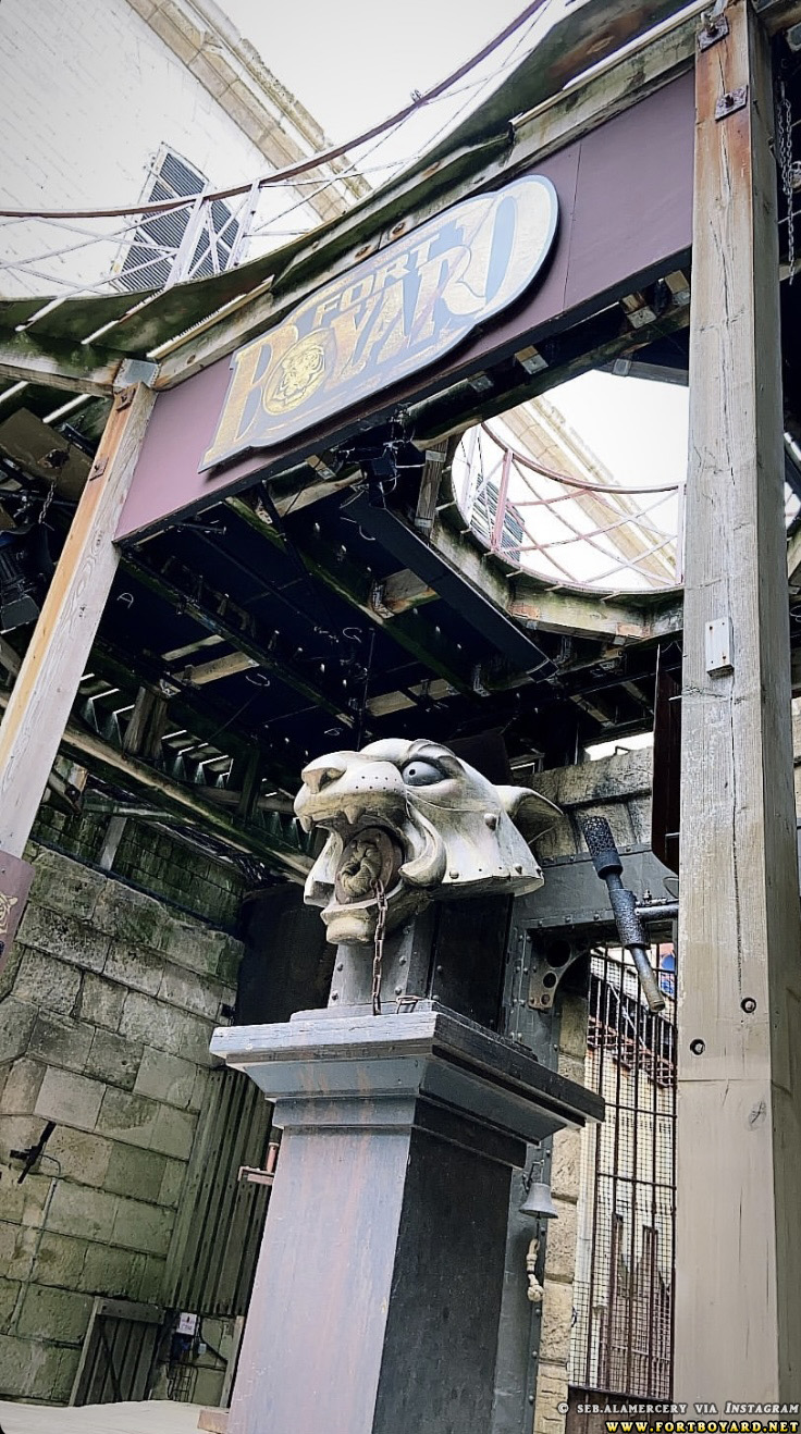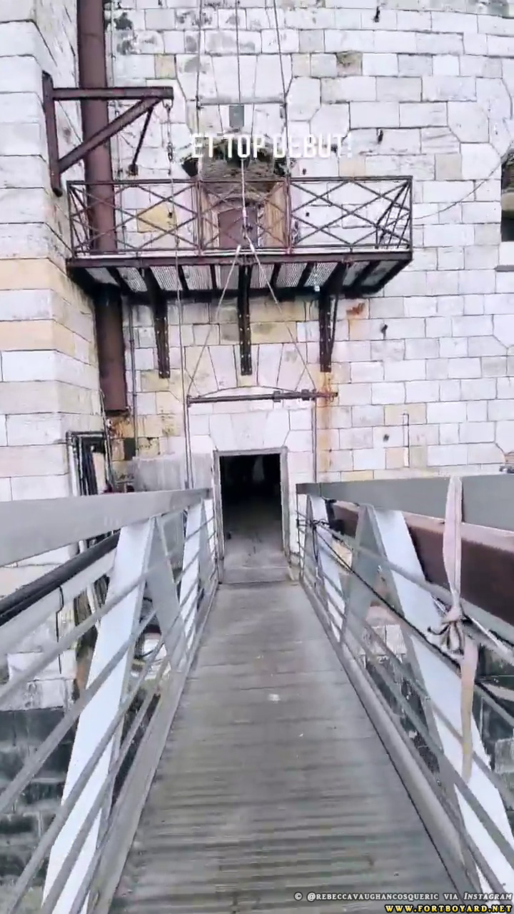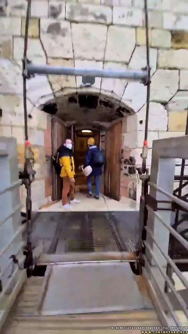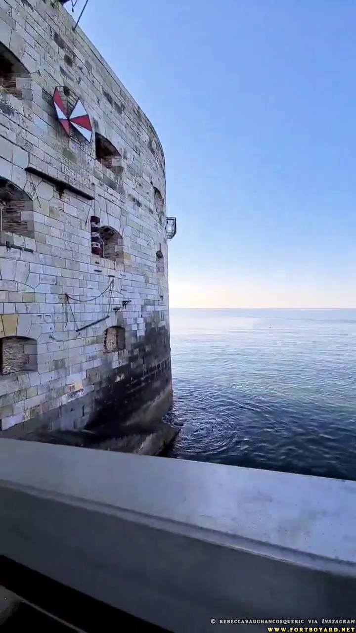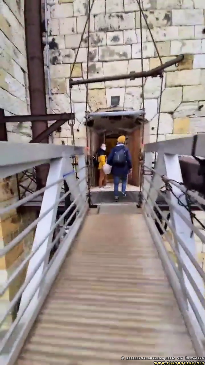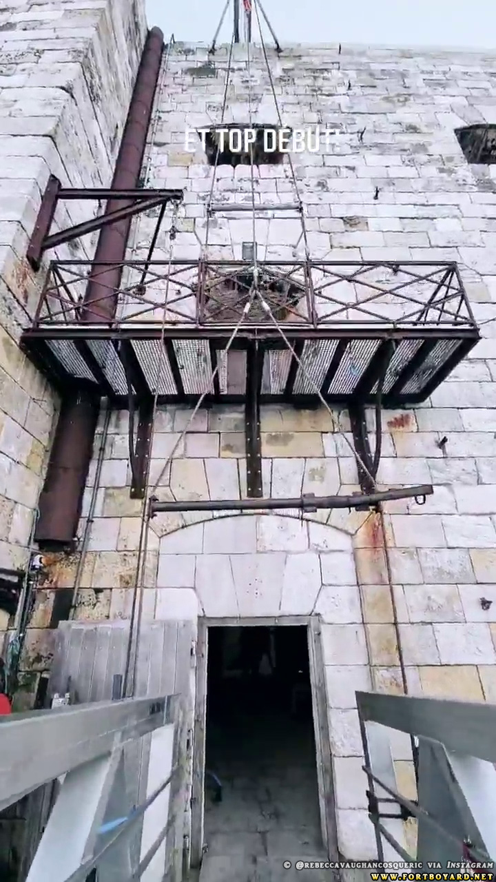 Commentaire : Guillaume Lebel, un cadreur, partage aujourd’hui quelques clichés de l’intérieur du Fort, rares depuis l’ouverture du Fort fin mars dernier, en story sur son compte Instagram. On peut notamment y voir le carrelet du Fort avec la présence d’un canon, mais surtout une vue extérieure qui nous permet de constater qu’une nouvelle aventure a été installée au sud-est du Fort, en léger contrebas de la vigie. Elle prend la forme d’une sorte de cabine rouge dans les airs. On remarque aussi ce qui semble être une sorte de cabine de téléphérique à l’arrière au niveau du parapet qui semble reliée à une structure permettant de la faire basculer...