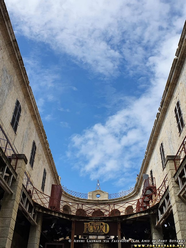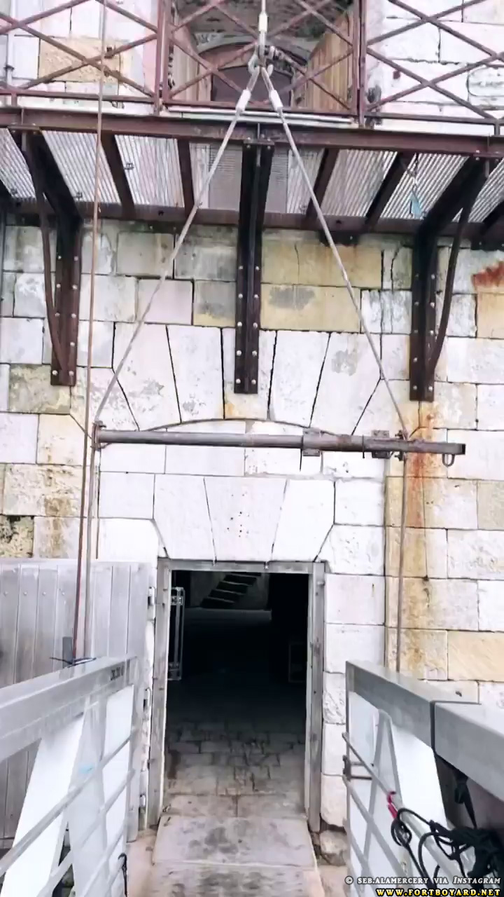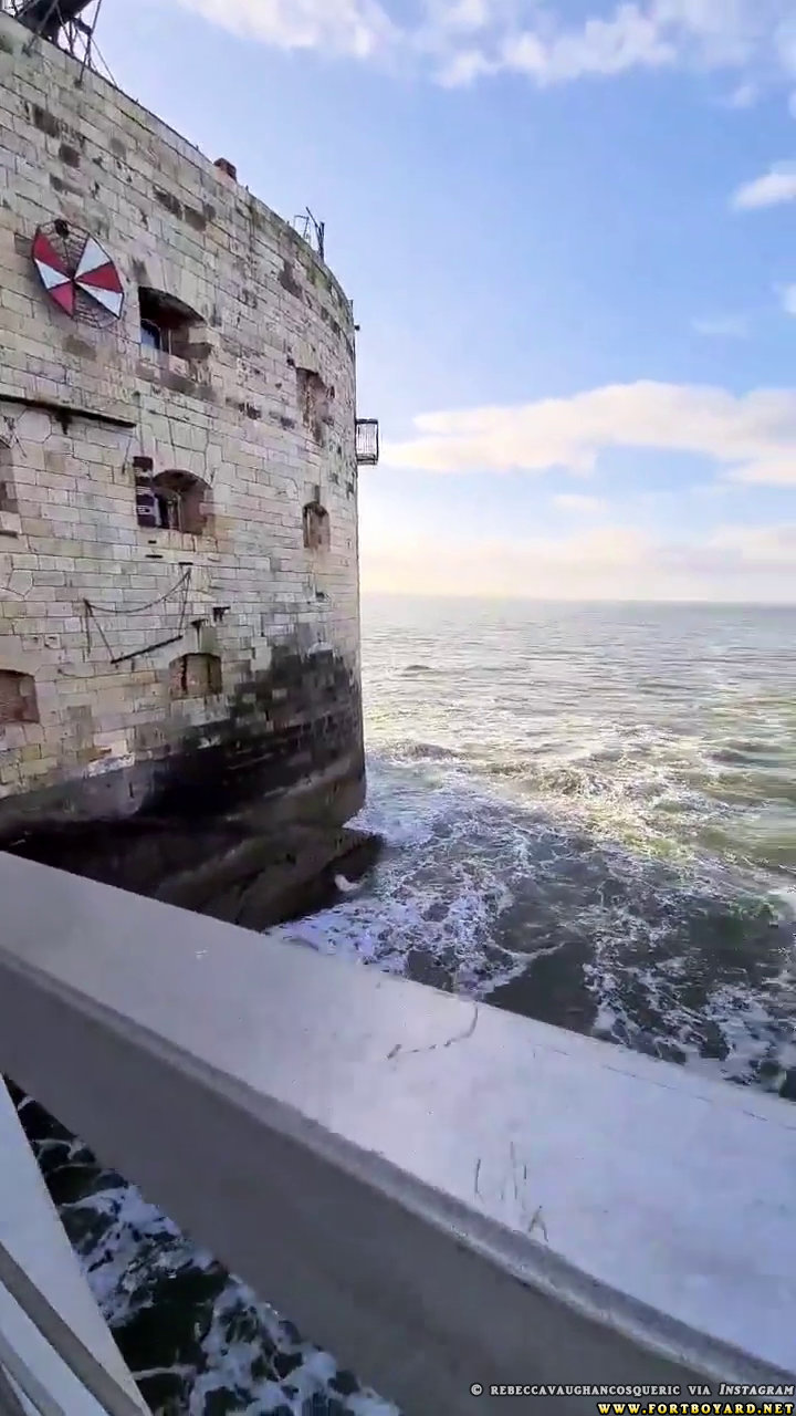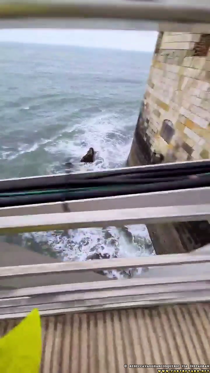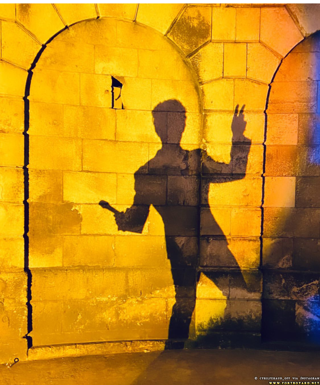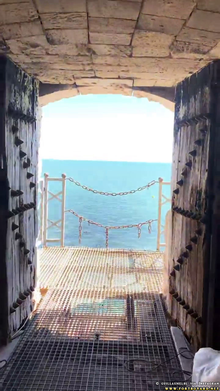 Commentaire : Guillaume Lebel, un cadreur, partage aujourd’hui quelques clichés de l’intérieur du Fort, rares depuis l’ouverture du Fort fin mars dernier, en story sur son compte Instagram. On peut notamment y voir le carrelet du Fort avec la présence d’un canon, mais surtout une vue extérieure qui nous permet de constater qu’une nouvelle aventure a été installée au sud-est du Fort, en léger contrebas de la vigie. Elle prend la forme d’une sorte de cabine rouge dans les airs. On remarque aussi ce qui semble être une sorte de cabine de téléphérique à l’arrière au niveau du parapet qui semble reliée à une structure permettant de la faire basculer...