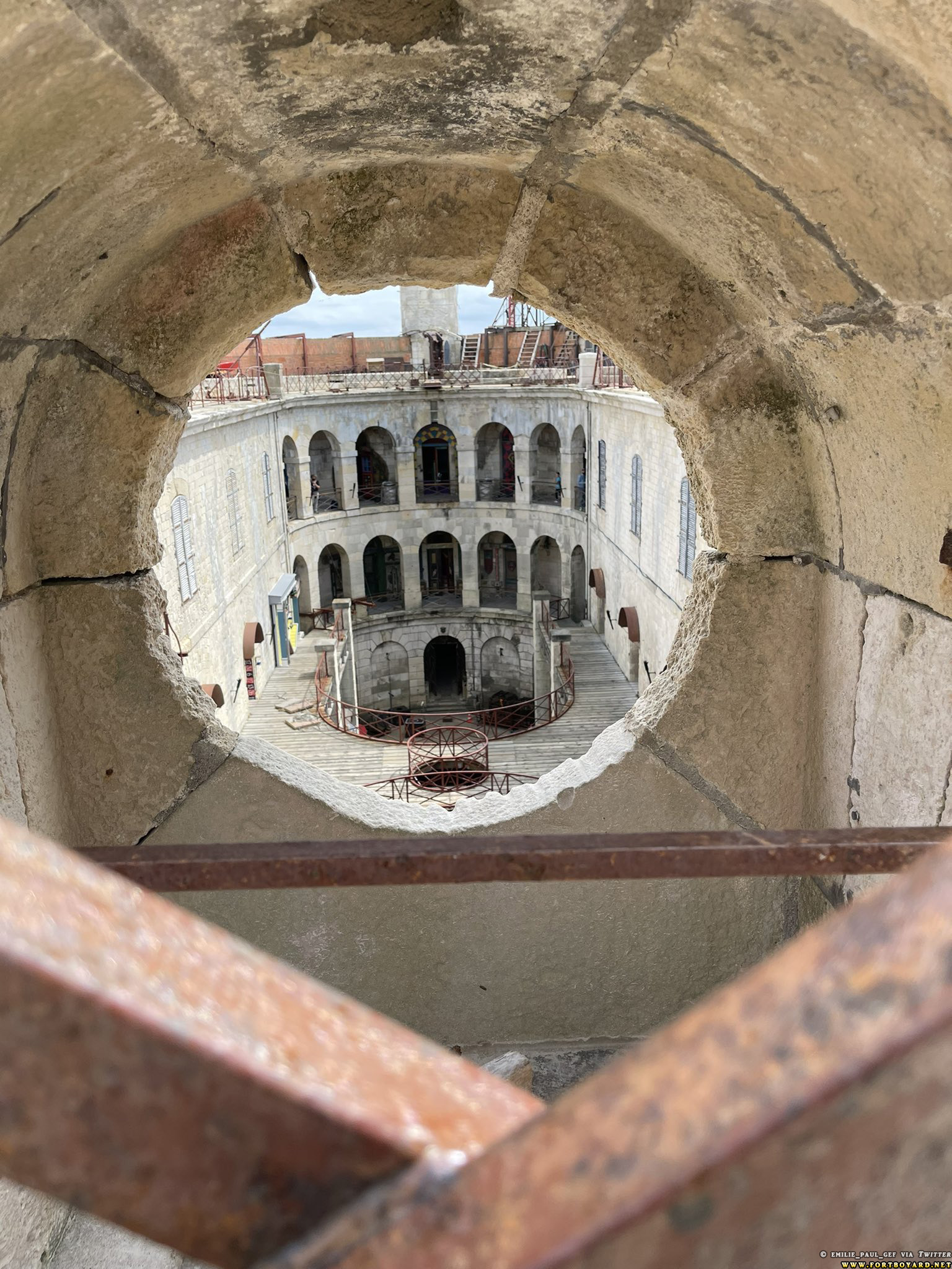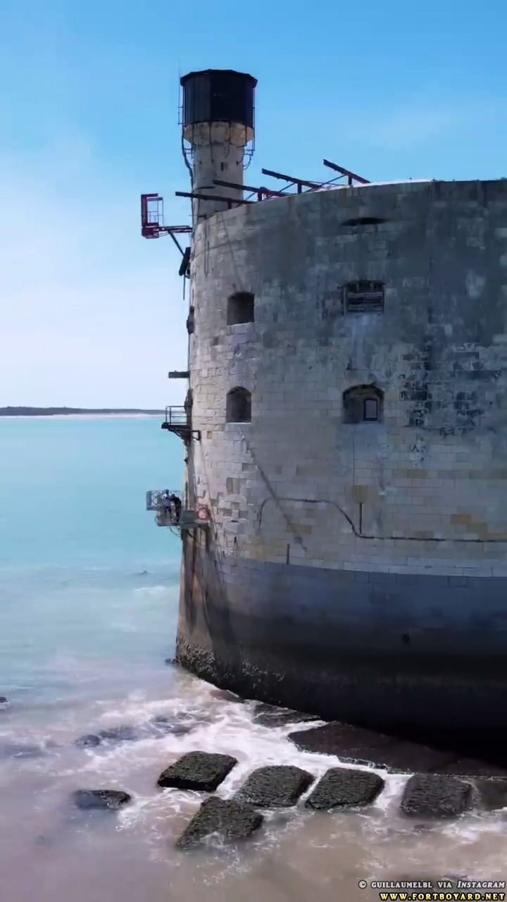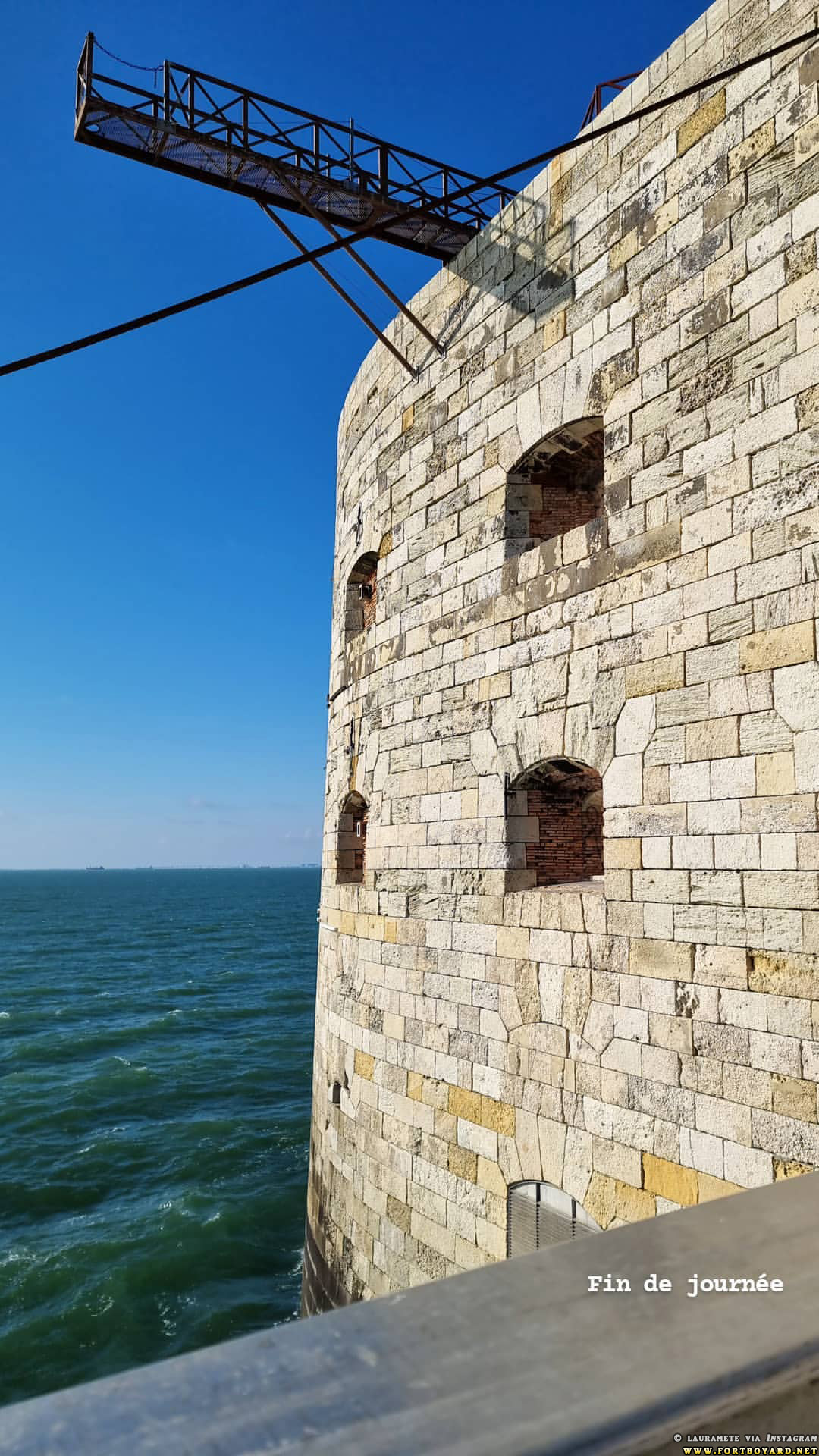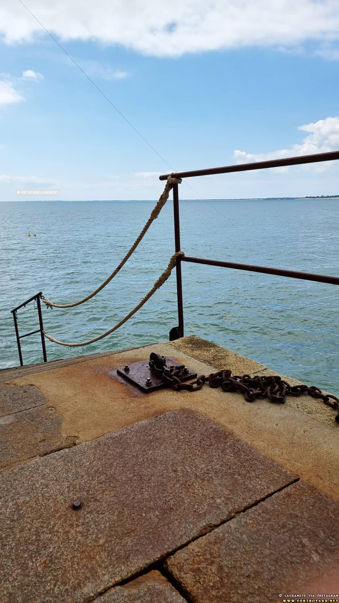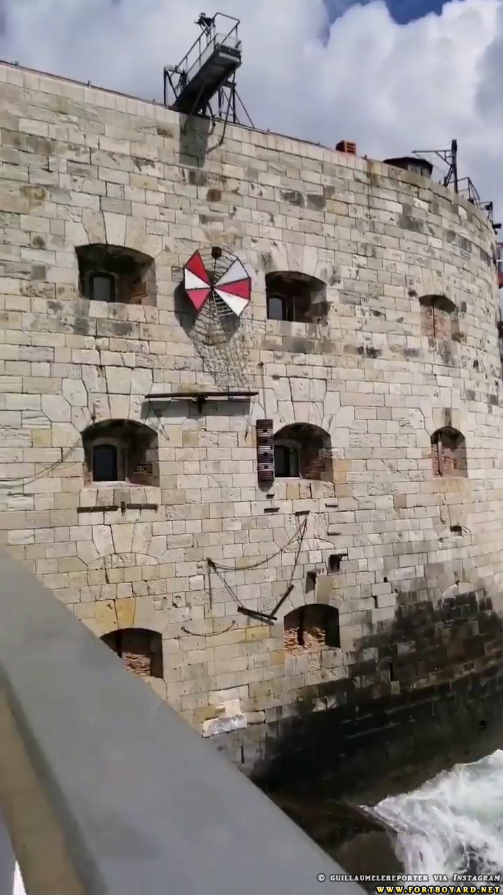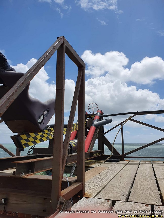 Commentaire : Guillaume Lebel, un cadreur, partage aujourd’hui quelques clichés de l’intérieur du Fort, rares depuis l’ouverture du Fort fin mars dernier, en story sur son compte Instagram. On peut notamment y voir le carrelet du Fort avec la présence d’un canon, mais surtout une vue extérieure qui nous permet de constater qu’une nouvelle aventure a été installée au sud-est du Fort, en léger contrebas de la vigie. Elle prend la forme d’une sorte de cabine rouge dans les airs. On remarque aussi ce qui semble être une sorte de cabine de téléphérique à l’arrière au niveau du parapet qui semble reliée à une structure permettant de la faire basculer...