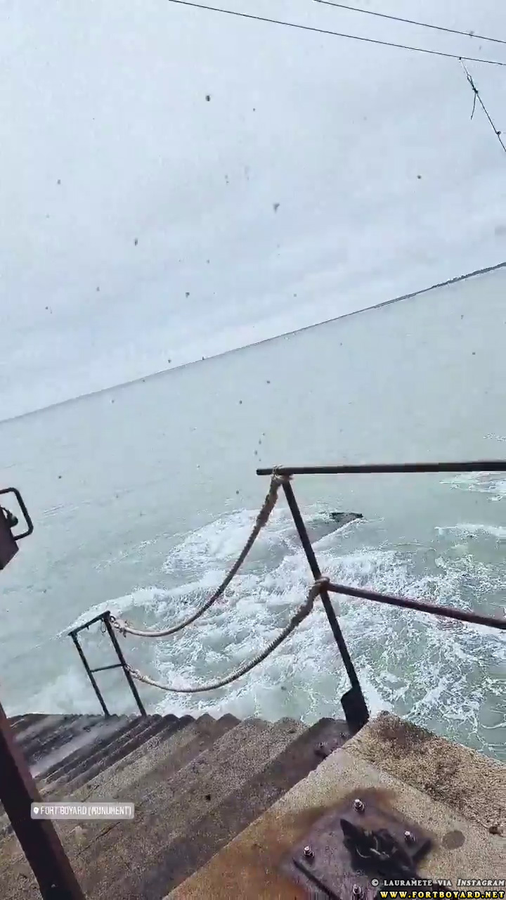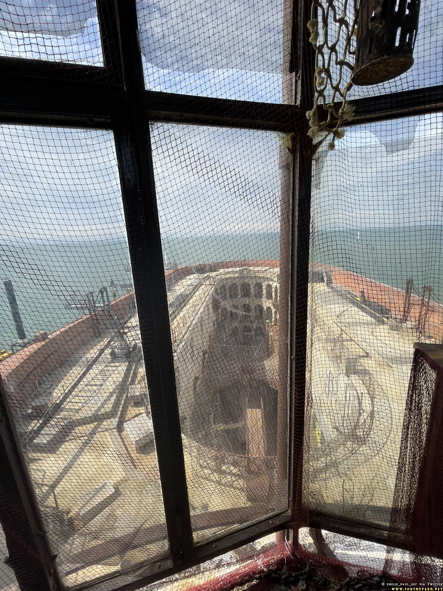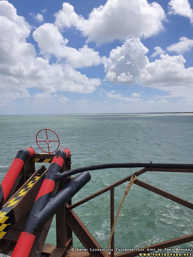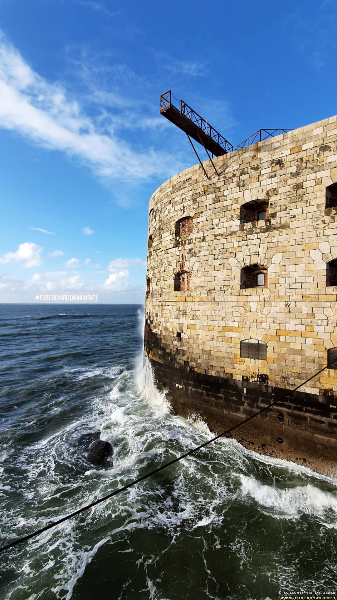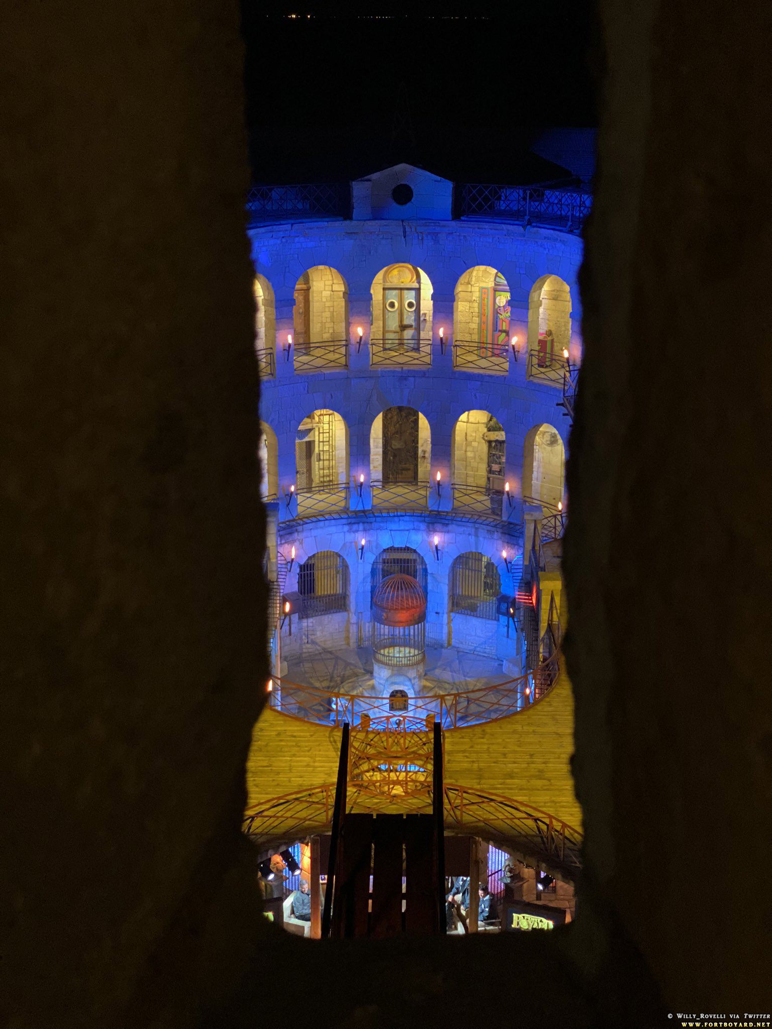 Commentaire : Guillaume Lebel, un cadreur, partage aujourd’hui quelques clichés de l’intérieur du Fort, rares depuis l’ouverture du Fort fin mars dernier, en story sur son compte Instagram. On peut notamment y voir le carrelet du Fort avec la présence d’un canon, mais surtout une vue extérieure qui nous permet de constater qu’une nouvelle aventure a été installée au sud-est du Fort, en léger contrebas de la vigie. Elle prend la forme d’une sorte de cabine rouge dans les airs. On remarque aussi ce qui semble être une sorte de cabine de téléphérique à l’arrière au niveau du parapet qui semble reliée à une structure permettant de la faire basculer...