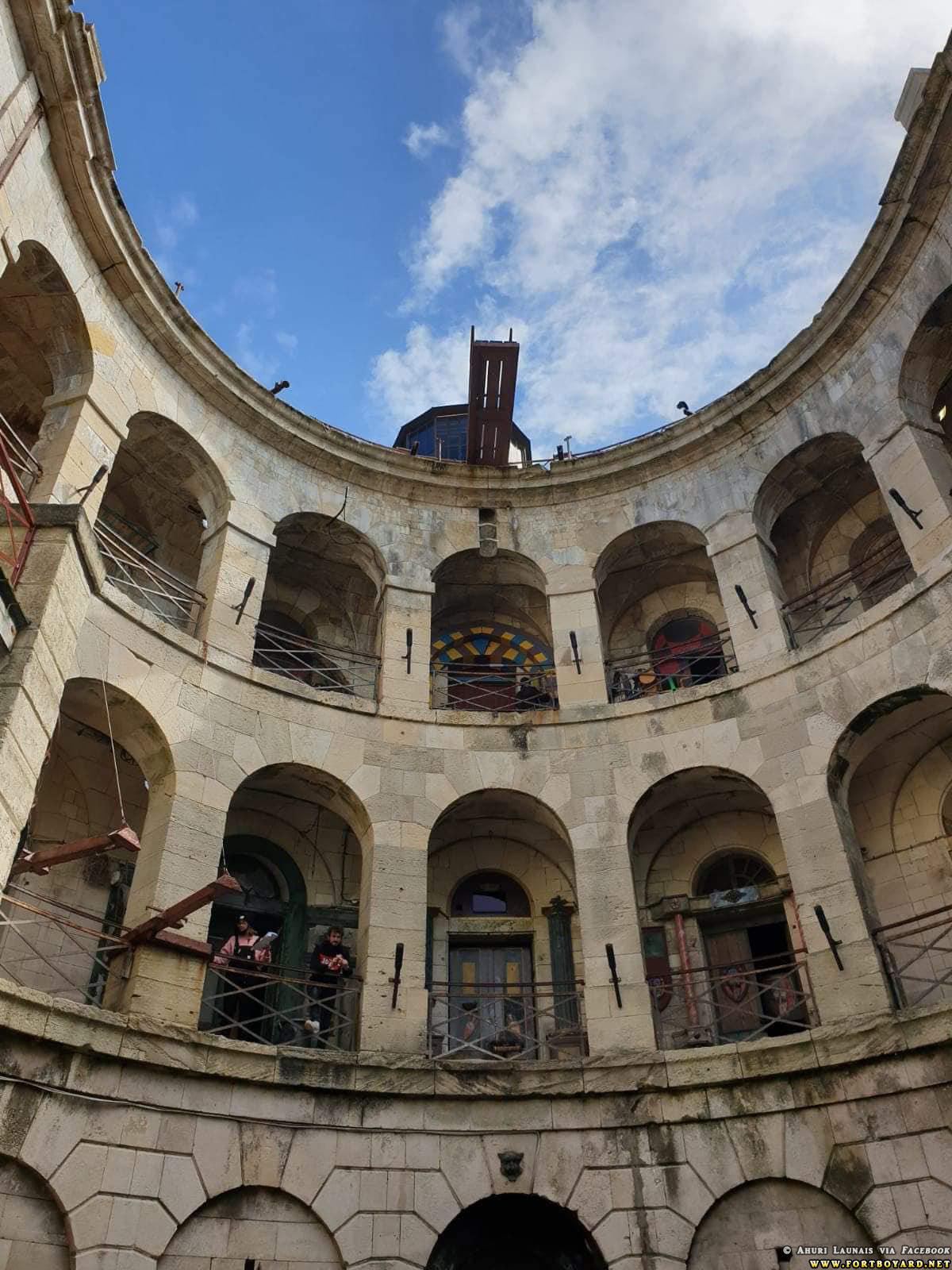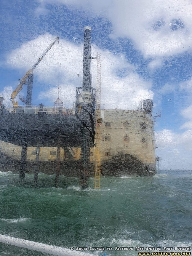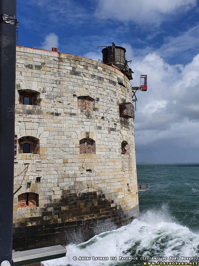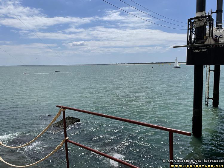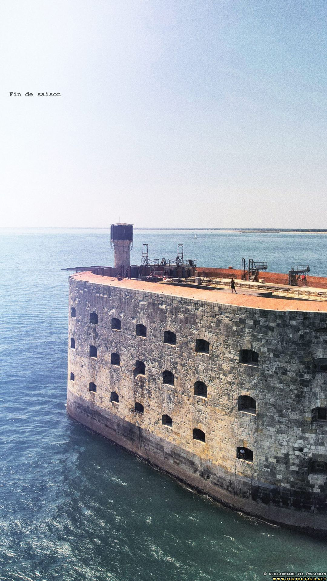 Commentaire : ce lundi, après près de 4 mois d’ouverture (le Fort avait été rouvert le lundi 29 mars cette saison), Fort Boyard a fermé ses portes suite aux démontages et au rapatriement des derniers matériels à terre. La passerelle d’accès au Fort a été relevée et placée sur la plateforme. Le Fort a été placé en situation d’hivernage et certains éléments protégés, comme la fontaine à boyards dans la Salle du Trésor. Des travaux sont néanmoins prévus prochainement et entraîneront une réouverture partielle de l’édifice. En effet, le proscenium (partie surélevée devant la grille de la Salle du Trésor) doit être entièrement refait et la passerelle de circulation en bois du 1er étage également. Ces travaux sont prévus pour les prochains mois et seront financés par le Conseil départemental de Charente-Maritime, propriétaire des lieux, dans le cadre de l’accord départemental du plan de relance, récemment signé entre l’Etat et le Département.