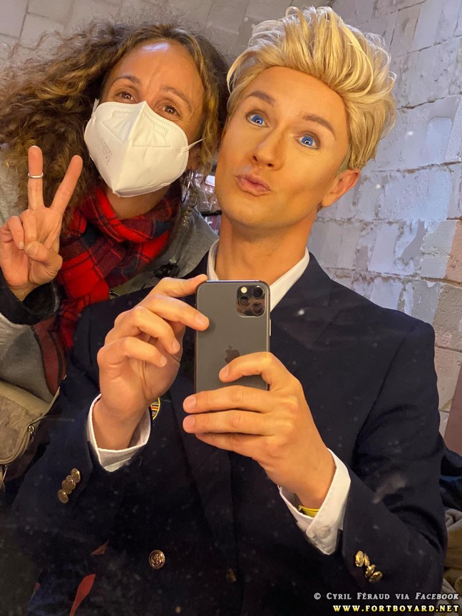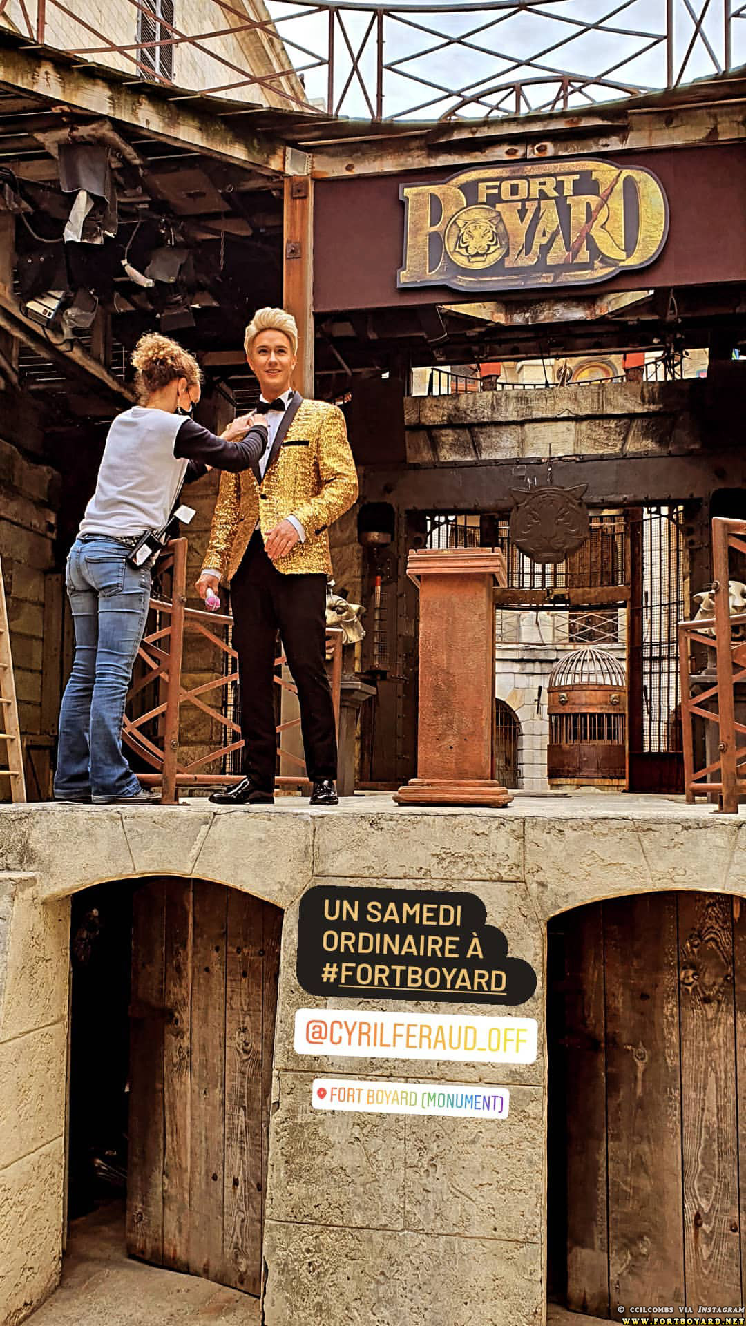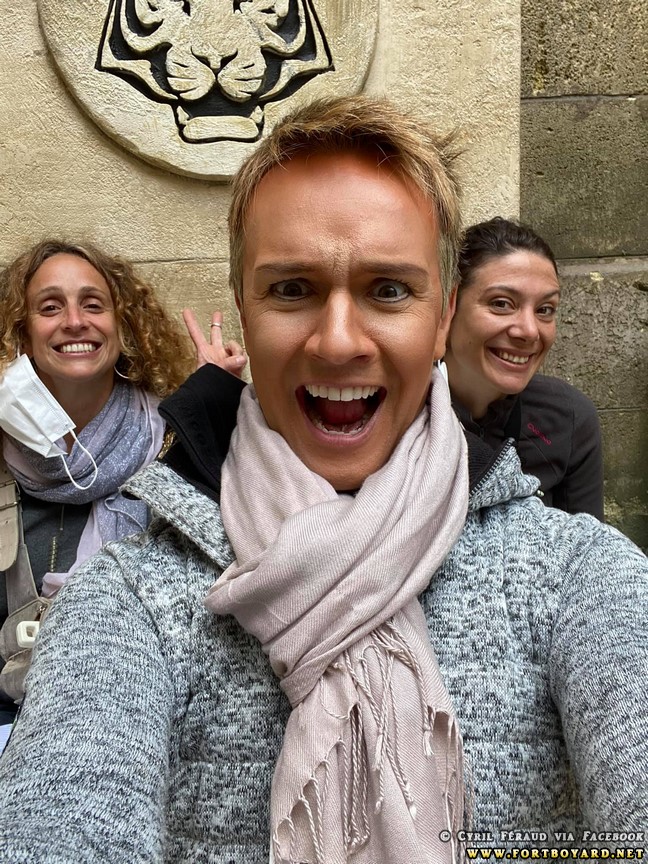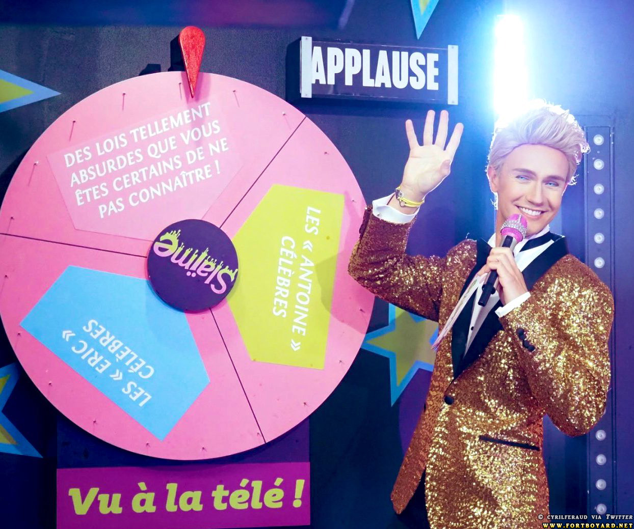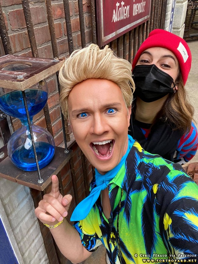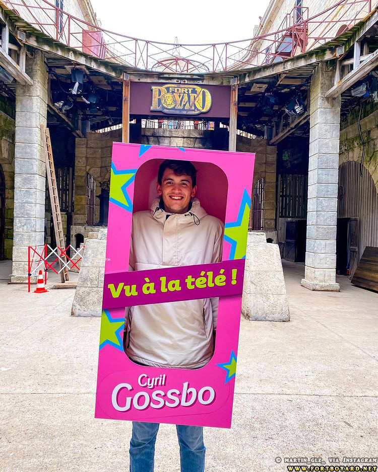 Commentaires : vers 19h30, Cyril Féraud est arrivé en Charente-Maritime ce soir et rejoindra le Fort demain pour réendosser ses costumes scintillants pour incarner Cyril Gossbo dans deux jeux différents en cellule 208 : le Slaïme que l’on connaît bien, mais aussi le Bingo’ssbo...