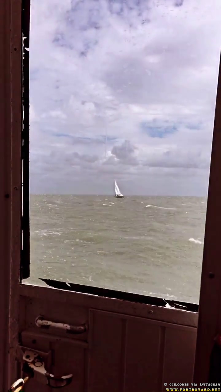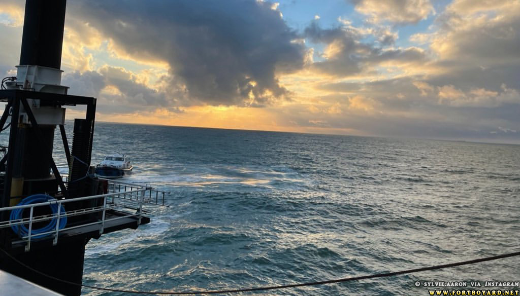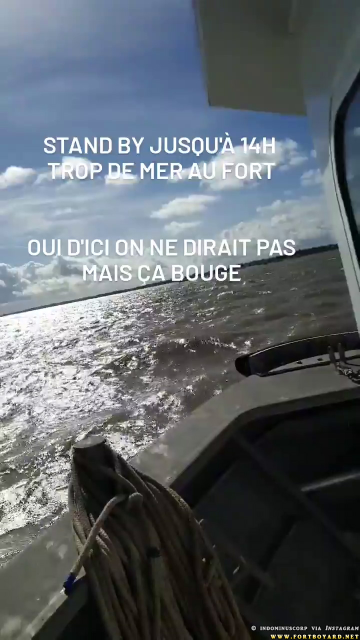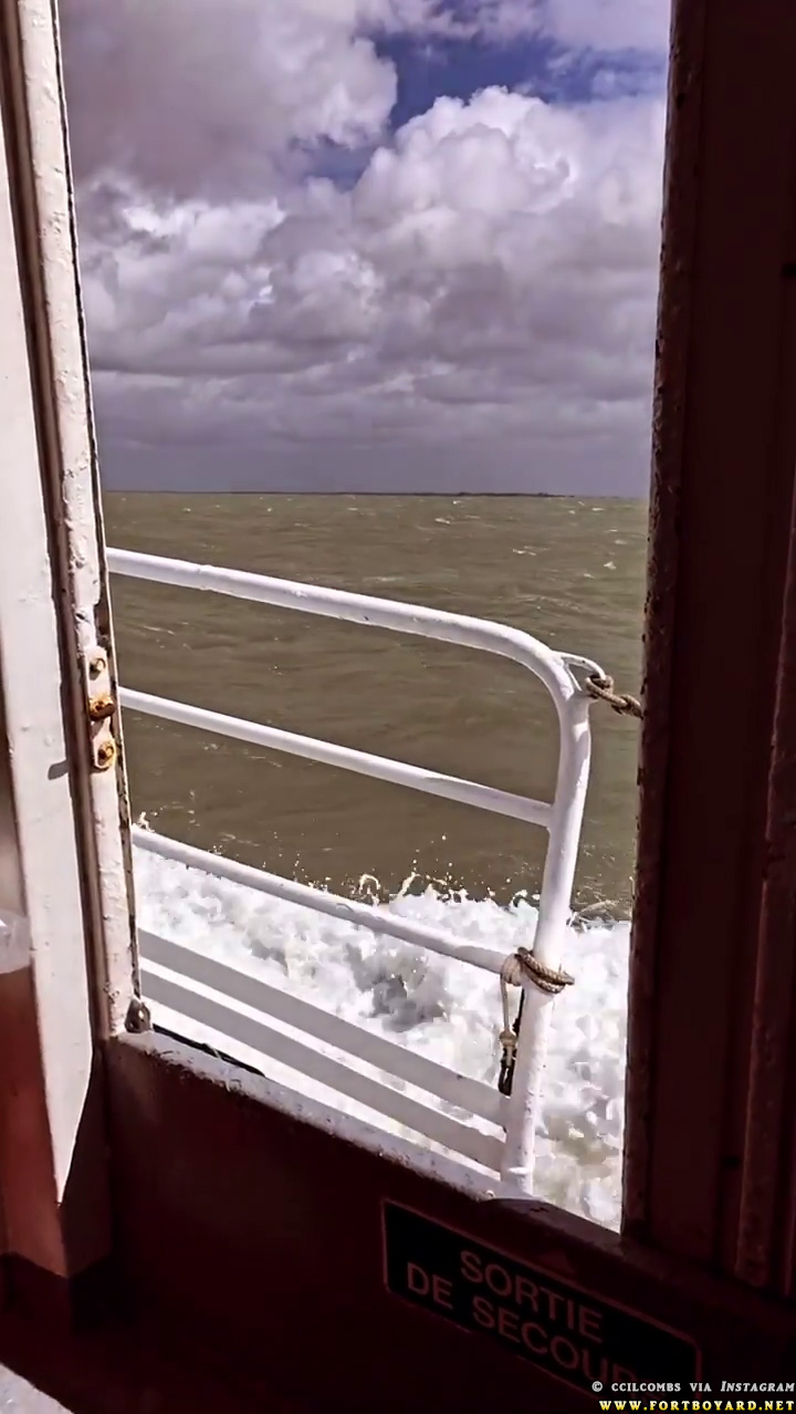 Commentaire : Anthony Laborde alias Passe-Muraille était en route pour sa première journée sur le Fort peu avant 13h sous un temps plutôt maussade et une mer agitée.