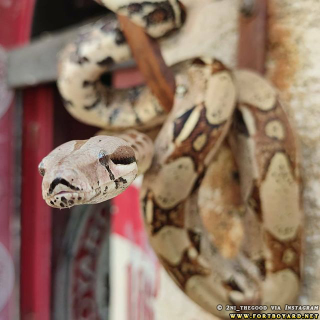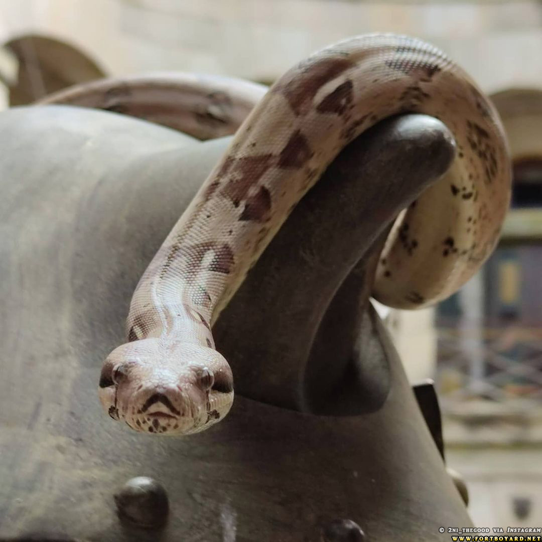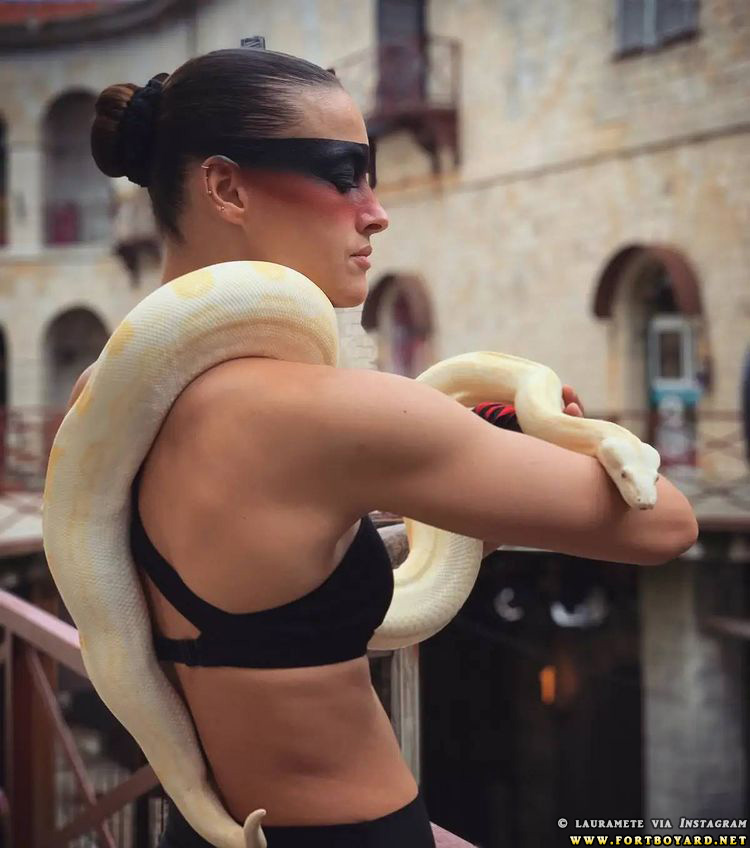 Commentaires : Laura Mété alias Lady Boo en compagnie d’un très gros serpent.