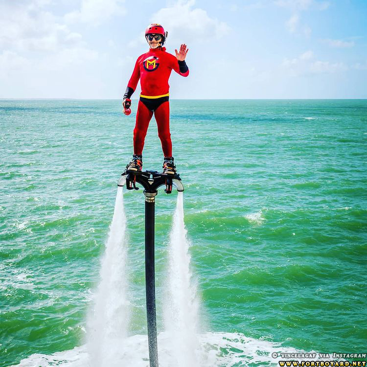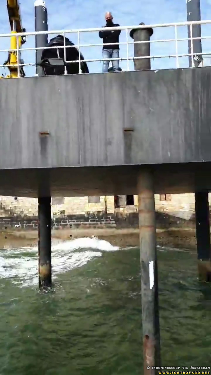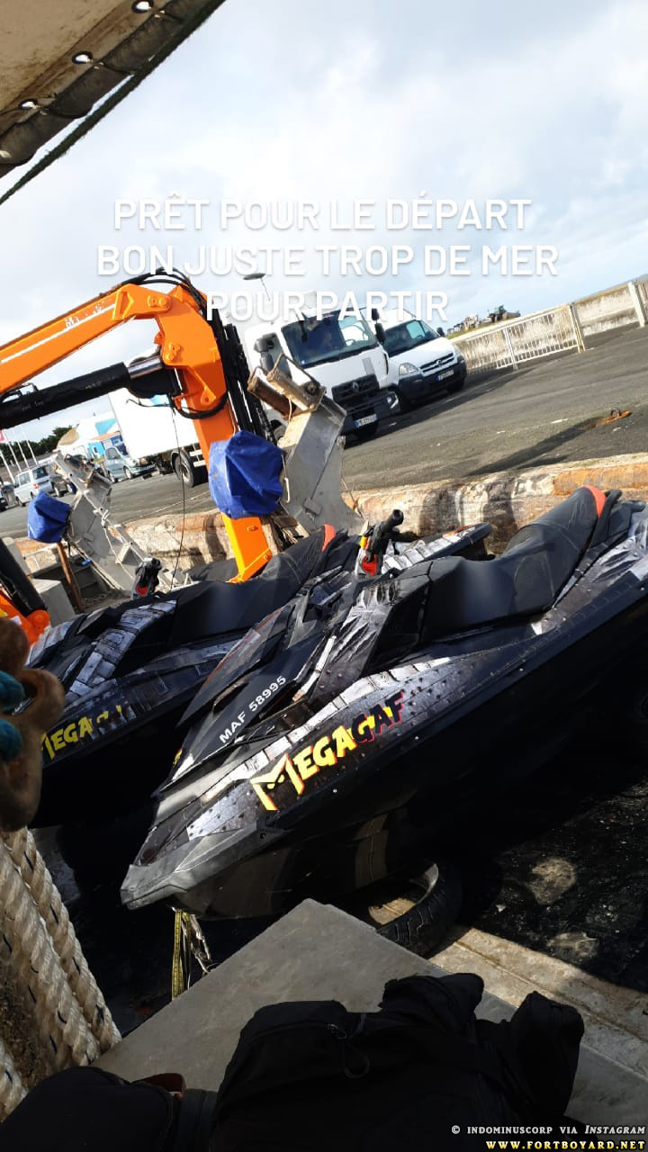 Commentaires : Vincent Lagaf’ est son fils Robin Rouil sont arrivés hier soir en Charente-Maritime après 900 km et de nombreuses heures de route pour installer sur la plateforme du Fort le matériel nécessaire aux épreuves aquatiques (dont le fameux Flyboard) de Mégagaf. Problème : il y a beaucoup de vent ce matin ce qui ne rend pas possible leur départ pour le Fort et le déchargement en sécurité du matériel. Les deux compères espèrent pouvoir embarquer vers 14h.