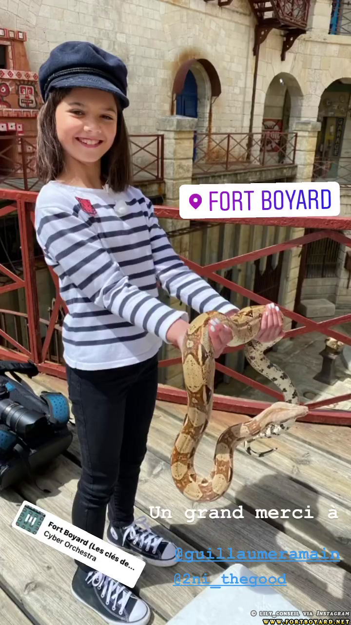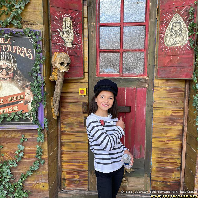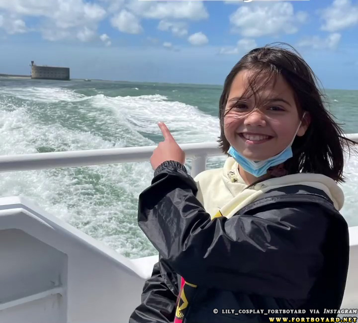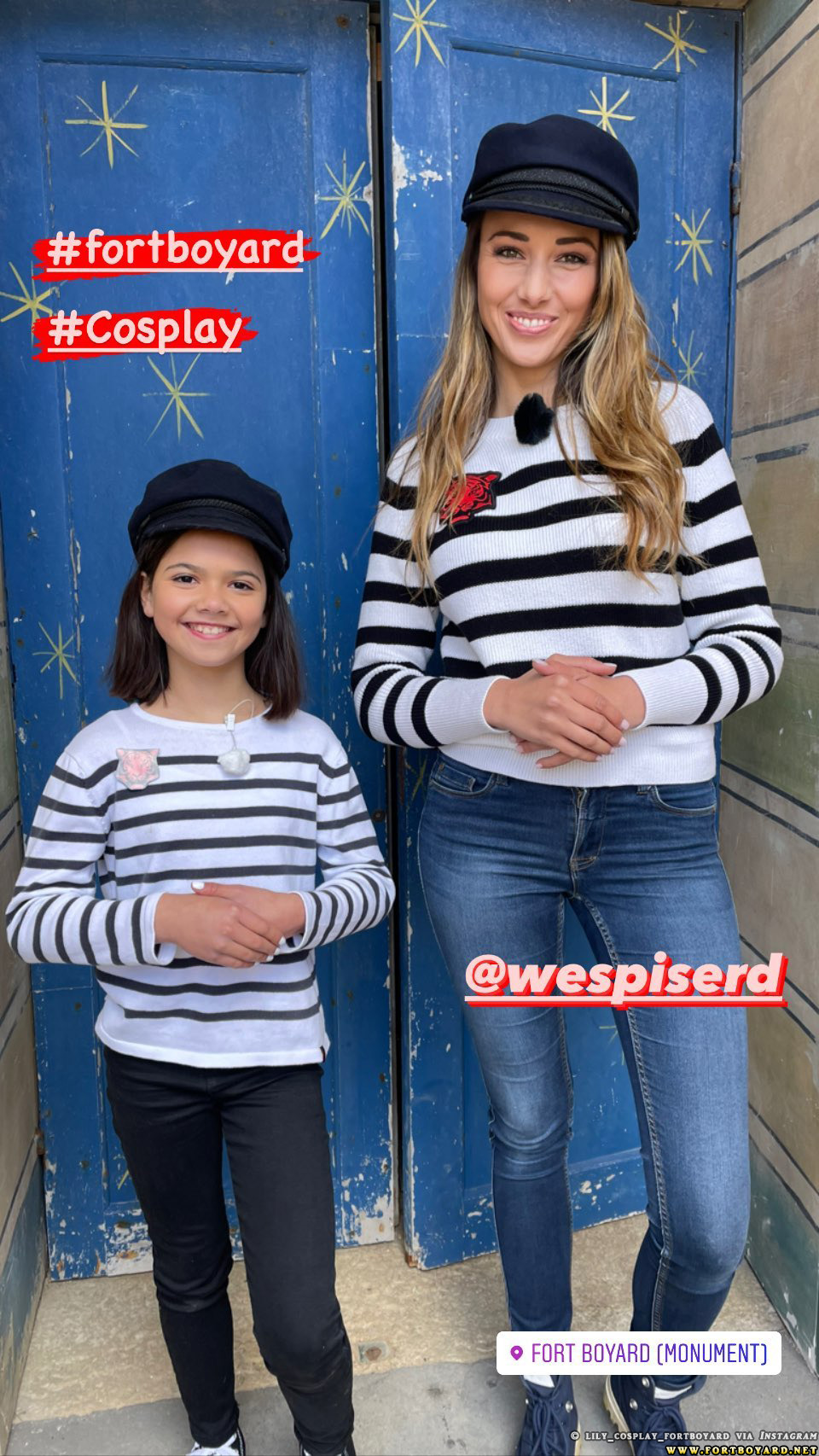 Commentaires : vers 21h40, la jeune Lily, connue des internautes pour ses colsplay (costumades) de Blanche, Rouge, Lady Boo et même Cyril Gossbo qu’elle partage sur son compte Instagram, a partagé ce soir un cliché d’elle et Casey alias Little Boo à la Pointe de la Fumée à Fouras. On la découvrira dans une séquence de Fort Boyard, toujours plus Fort ! cet été.