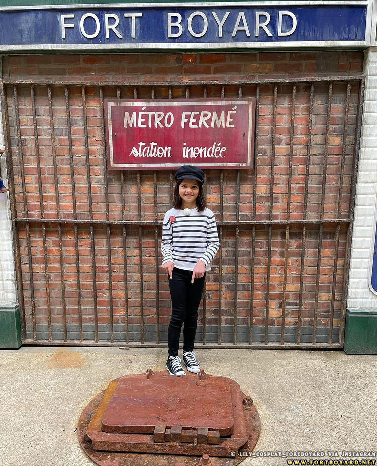 Commentaires : Lily, 10 ans, grimée en « Lily Gossbel », pendant féminin de « Cyril Gossbo », lors de sa visite du Fort le 11 mai 2021 en compagnie de l’envoyée spéciale Delphine Wespiser.