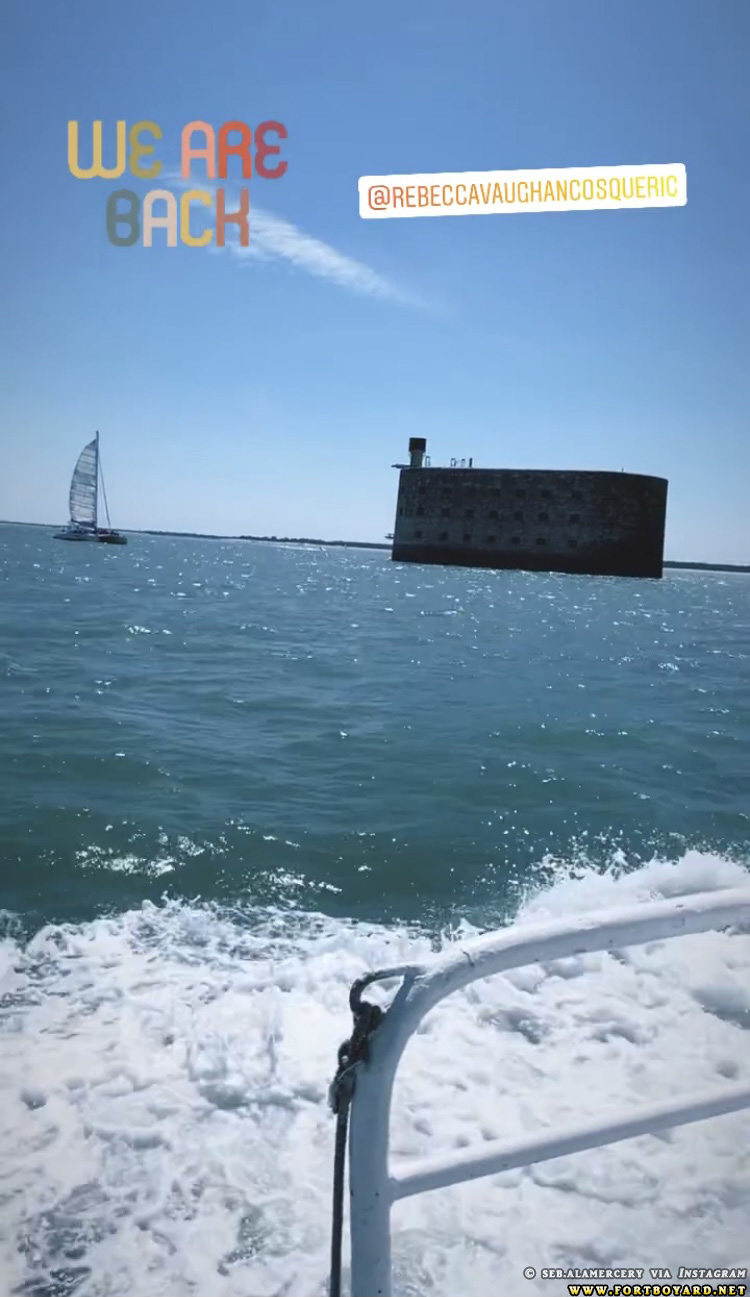 Commentaire : Inès Bahri, la chef d’édition et coordinatrice artistique de Fort Boyard est arrivée sur place pour préparer la 32e saison aux côtés des équipes techniques. Elle s’est rendue sur le Fort en Zodiac et nous a partagé quelques stories de son arrivée sur les lieux sur son compte Instagram.