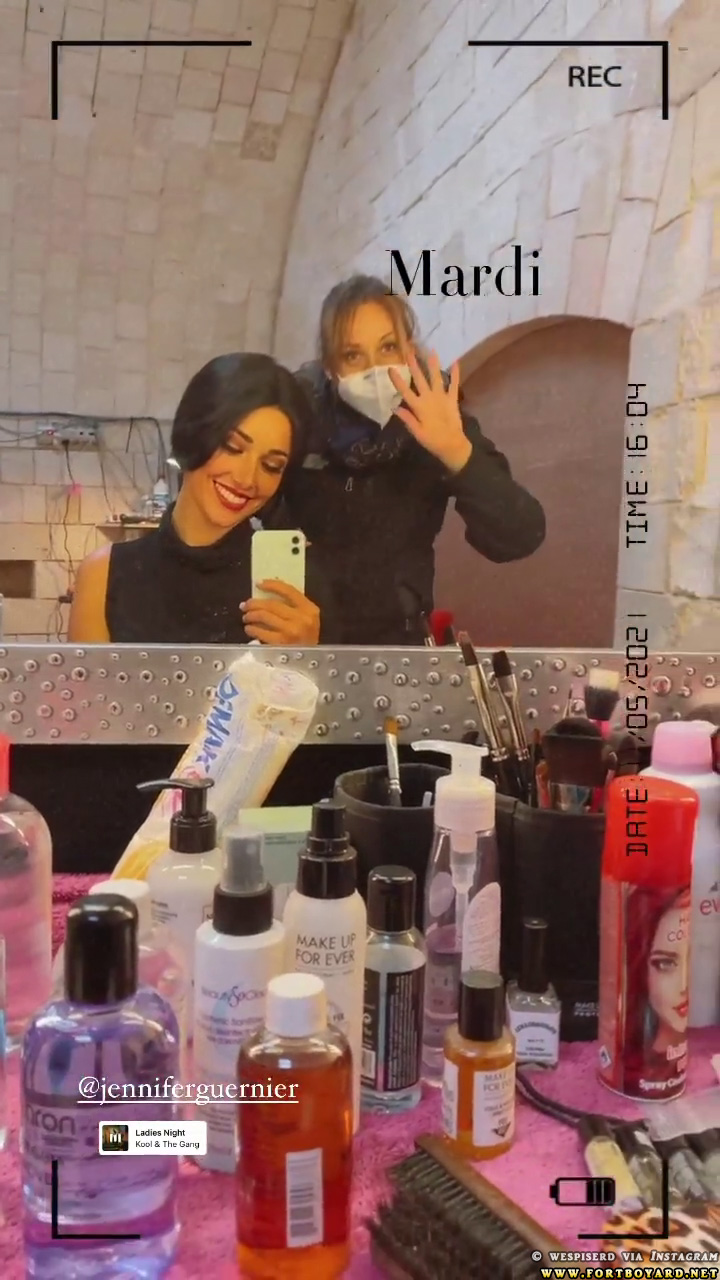 Commentaire : vers 21h15, Delphine Wespiser publié une autre photo de sa journée de répétition sur le Fort ! On la voit maquillée en Rouge, ce qui signifie qu’on retrouvera bien ce personnage et sans doute La Cage cette saison encore.