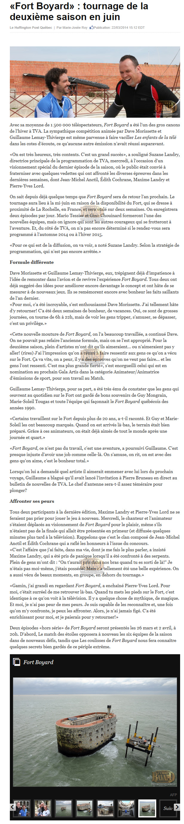 - « Huffington Post » (22 mars 2014, sur internet) :