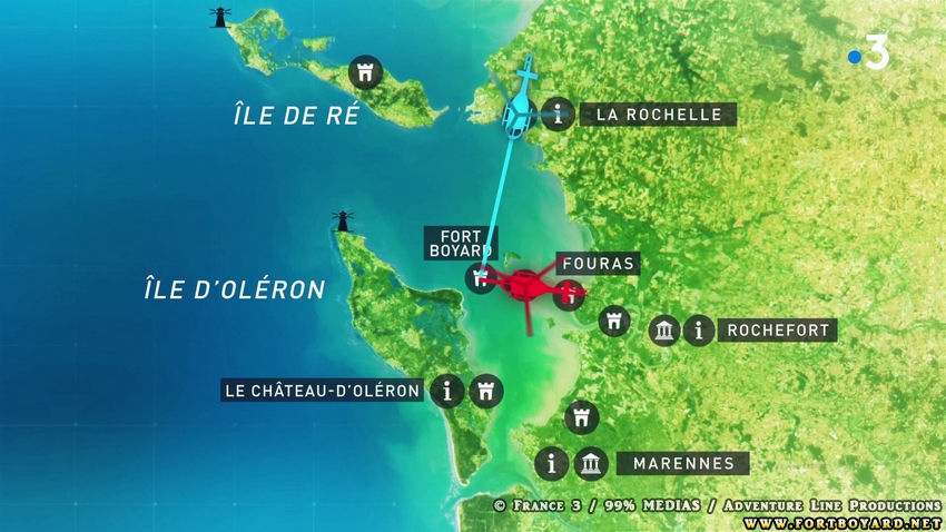 Nous savions depuis septembre 2018 que le jeu tournerait un numéro en Charente-Maritime puisque les fameux hélicoptères colorés du jeu de France 3 avaient été remarqués à proximité du Fort et que Cyril Féraud avait diffusé plusieurs clichés du tournage, notamment sur le Fort.