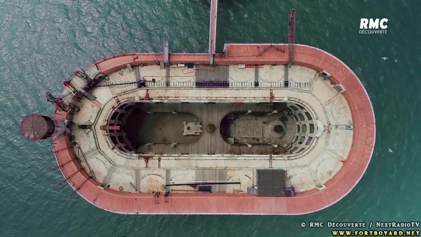Voix off : « le 6 février 1866, Fort Boyard est officiellement achevé. Au total 8,6 millions de francs auront été dépensés pour sa construction, soit 28 millions d’euros. Le résultat est vertigineux. 68 m de long, 31 m de large et 29 m de haut par endroit. Ancrés sur une solide assise en granit, les murs, épais de plus de 2 m, sont percés de 74 embrasures à canon. Le Fort dispose de trois niveaux de tir et grâce à sa forme elliptique il peut faire feu sur 360 °. Mais aussi fou que cela puisse paraître, Fort Boyard, à peine achevé, est déjà obsolète. Construit pour protéger le pertuis d’Antioche, hors de portée des canons de l’île d’Aix et d’Oléron, il a perdu toute utilité en raison des innovations technologiques que connaît l’armement ».