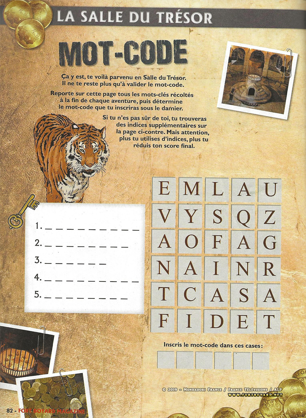 Le magazine proposait un parcours de jeux en suivant le schéma de l’émission avec des épreuves, des énigmes, des duels du Conseil et bien sûr la Salle du Trésor et son mot code.