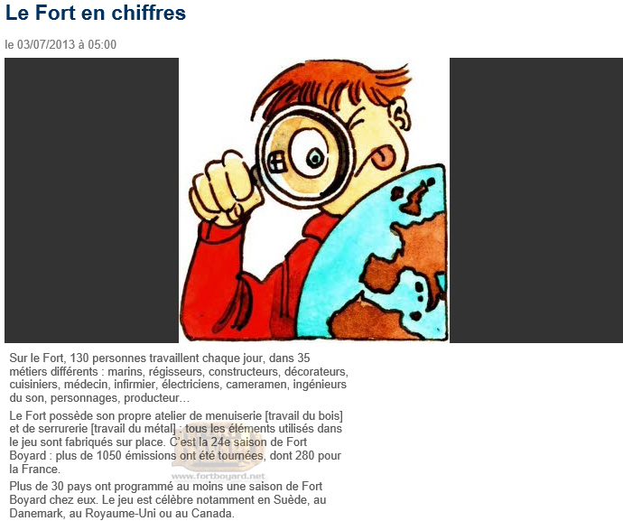 Les articles numérisés restent la propriété du site www.fortboyard.net, réutilisation formellement interdite sur un autre support sans accord préalable. Les logos du site ont pour but de protéger les numérisations.