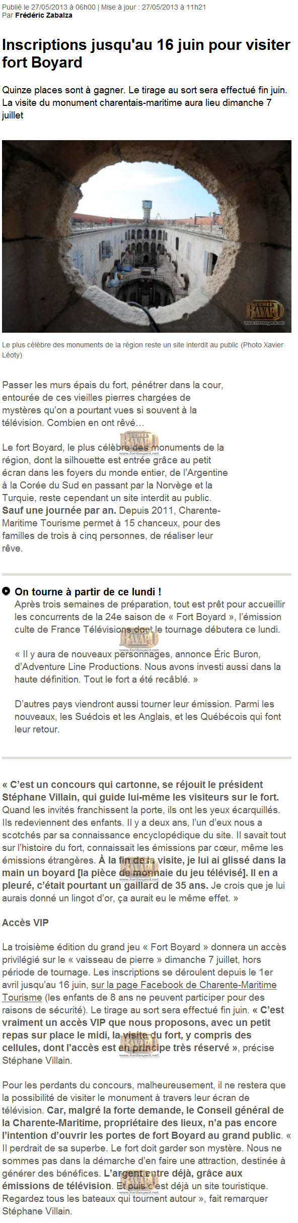 - « Charente Libre » (18 juillet 2013, sur internet) :
