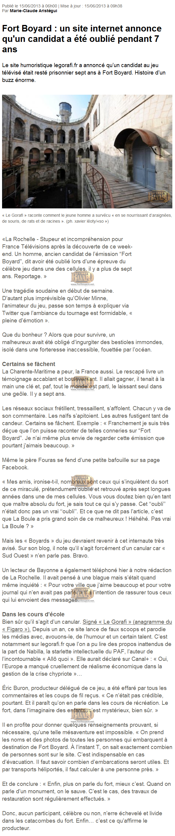 - « Sud-Ouest » (15 juin 2013, sur internet) :