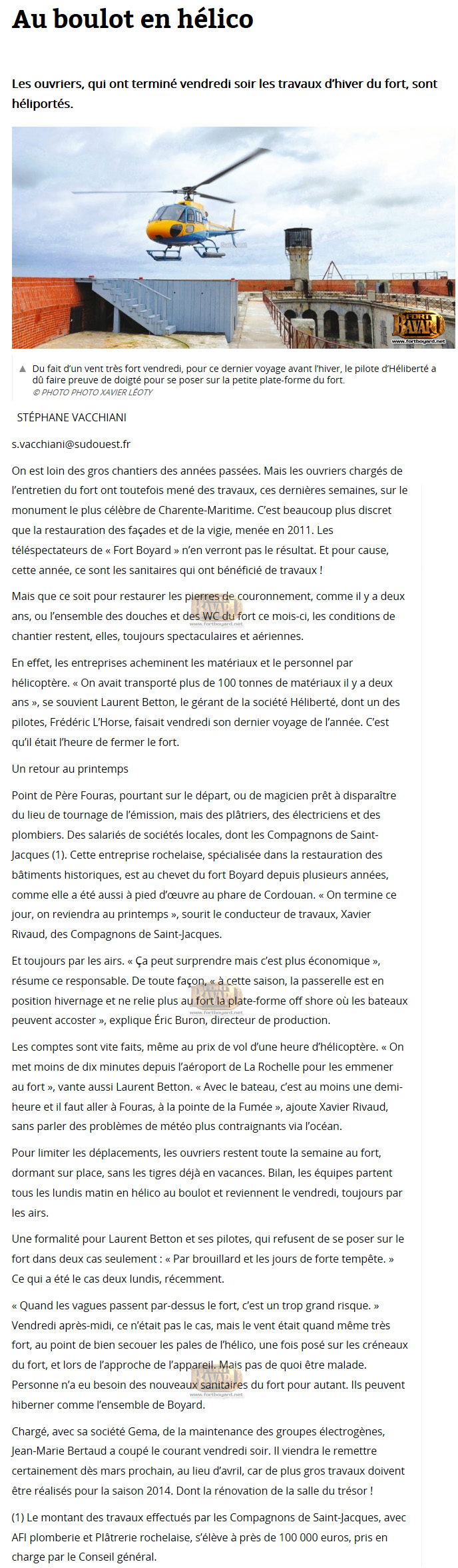 - « Sud-Ouest » (18 novembre 2013, sur internet) :